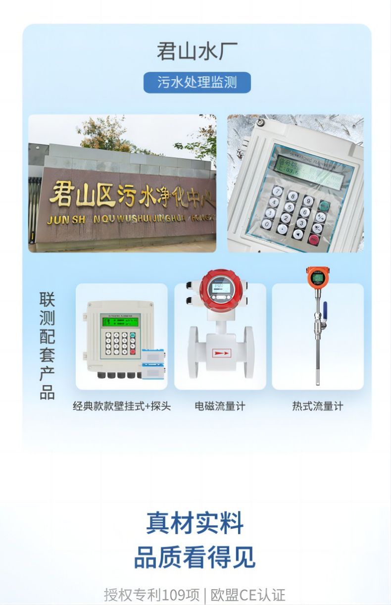 產品描述:聯測超聲波流量計適合相對純凈液體流量的管外測量,尤其是在水流量測量、在工業循環水、空調制冷循環水、原水、高壓水、自來水,污水排放管等廣泛應用。