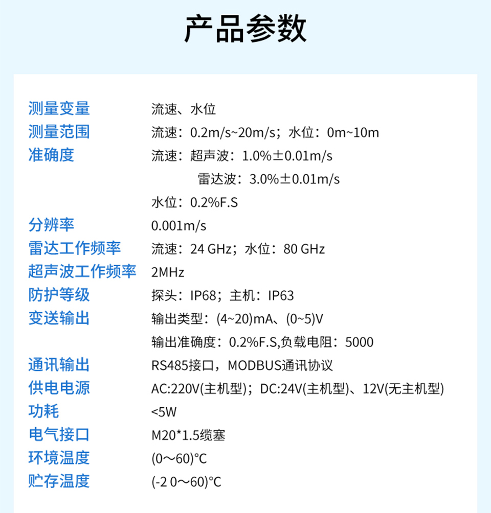 產品描述:聯測FAC300超聲波雷達雙波流量計,一款應用在自然水域、渠道或管道中測量水的流速、水位的產品。產品高度集成了雷達測流和超聲波測流優勢,實現滿管非滿管全場景測流,同時兼具雷達產品頂部安裝運維量極低的特點,也因此得以輕松應對復雜惡劣的管網工況。超聲波雷達雙波流量計利用雷達多普勒和超聲波多普勒復合雙模傳感器來感知水體流速,同時通過靜壓式和電導率傳感器復合傳感器感知水位變化,從而計算出實時流量。