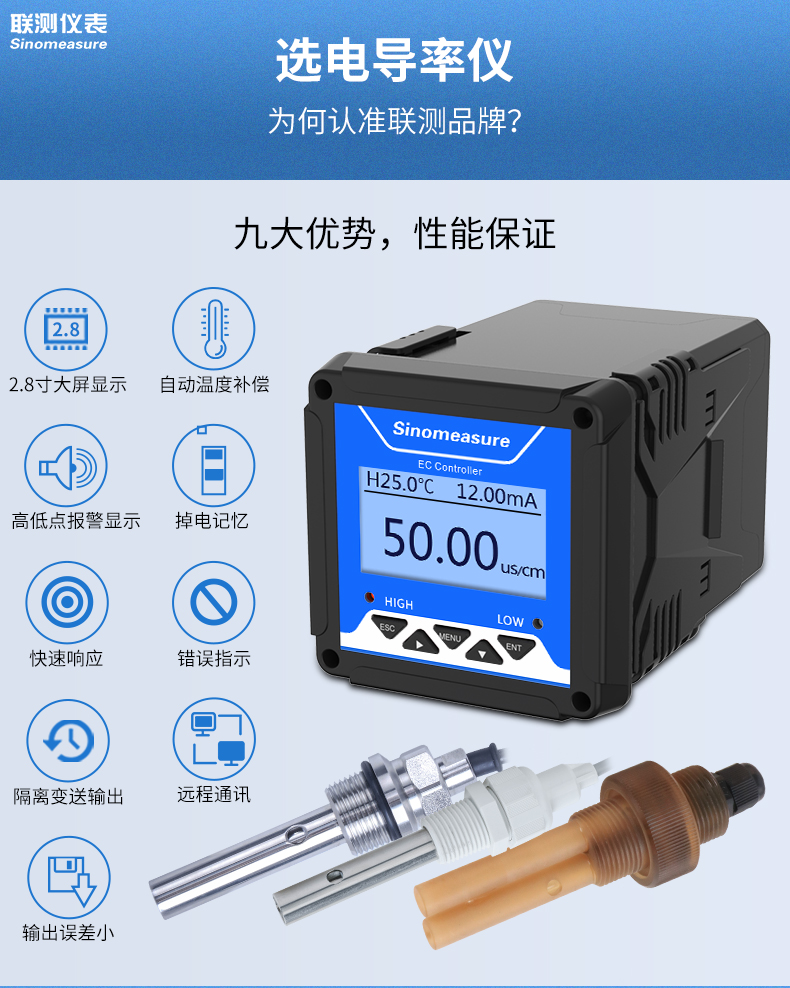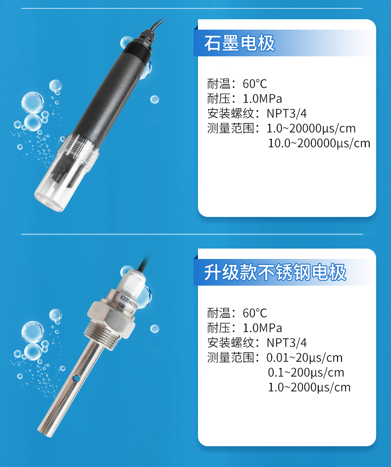 產(chǎn)品描述:電導(dǎo)率電極專門用于純水、水處理等的電導(dǎo)值測量,特別適合火力發(fā)電廠和水處理行業(yè)的電導(dǎo)率測量。CN5
