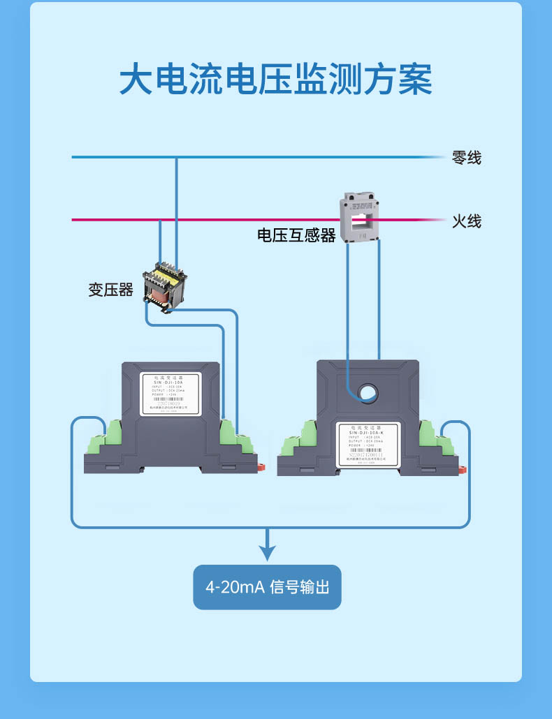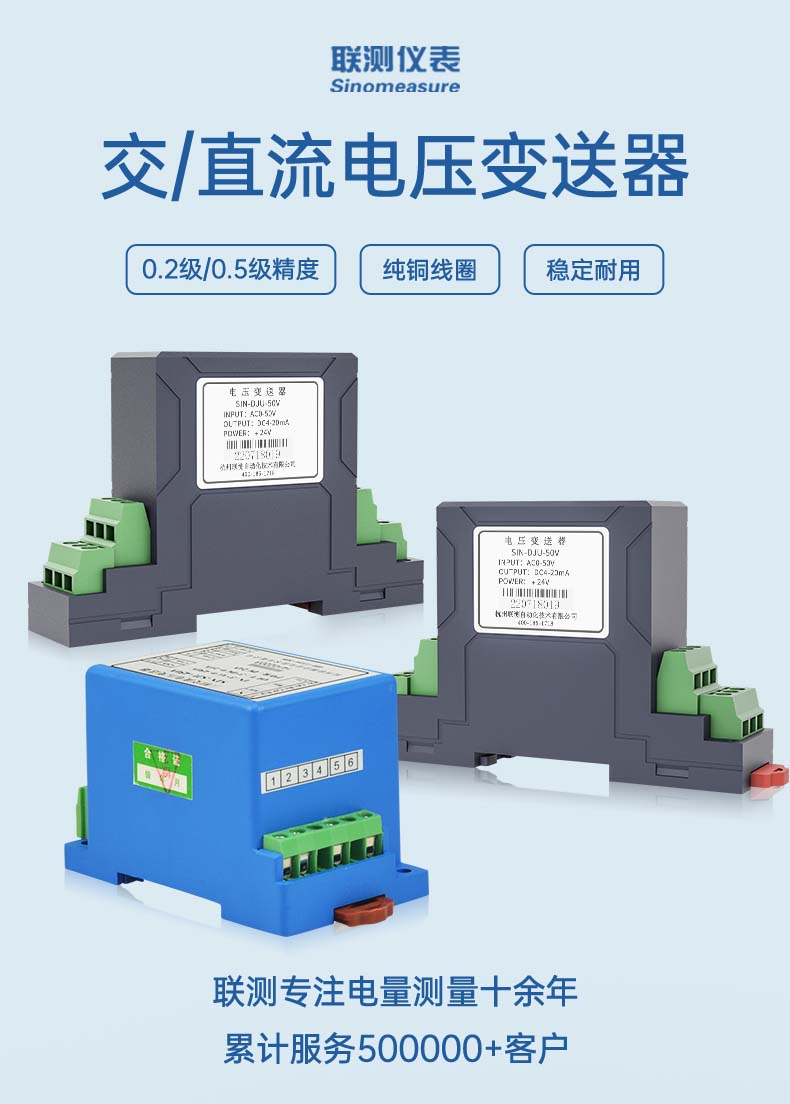 產品描述:電壓變送器是一種將被測交流電壓、直流電壓、脈沖電壓轉換成按線性比例輸出直流電壓或直流電流并隔離輸出模擬信號或數字信號的裝置。