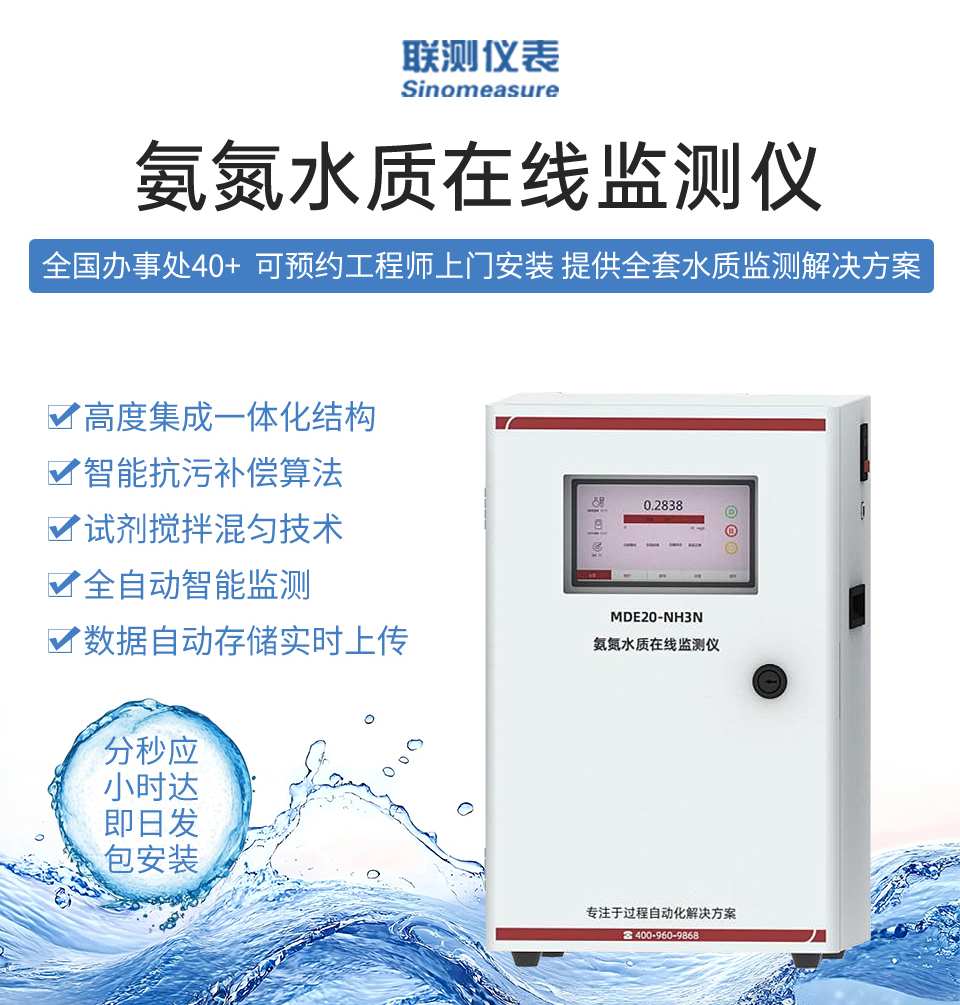 產品名稱:聯測_NH3N 型氨氮水質在線分析_試劑消耗量小,雙光路式檢測,支持USB、TF卡、IPv4網絡