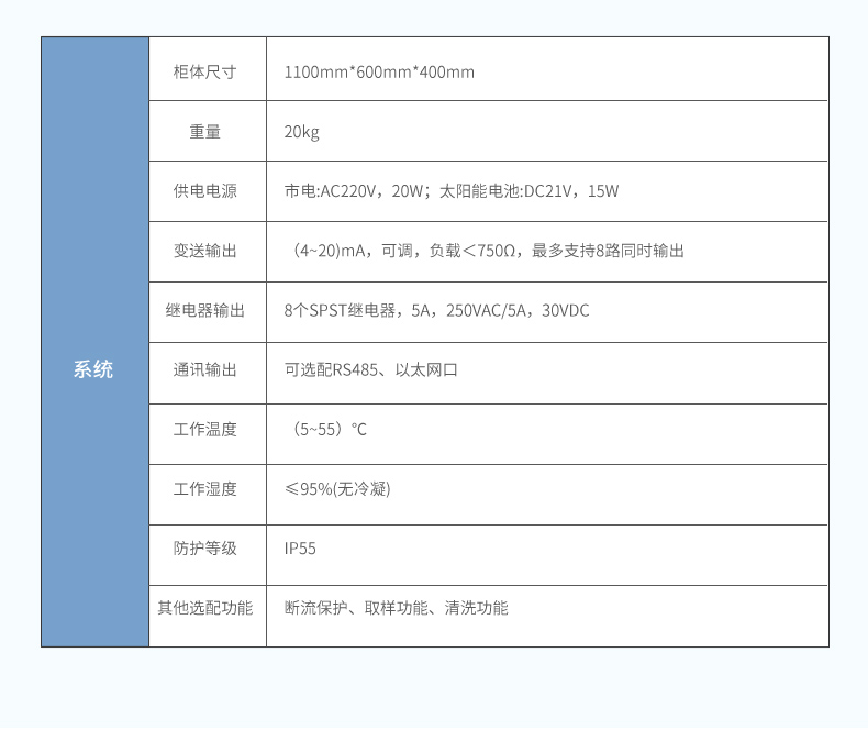 產(chǎn)品描述:一套系統(tǒng)可測量多種水質(zhì)參數(shù),測量參數(shù)可選,精度高,重復(fù)性好,傳感器可任意組合。安裝簡單易行,維護方便,無須添加試劑。沒有試劑消耗不會產(chǎn)生二次污染、無廢液,在一定范圍內(nèi)對電極進行溫度補償,多種輸出方式可選(模擬量(4~20)mA,RS485,以太網(wǎng)口)