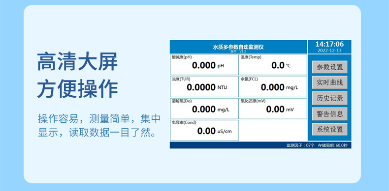產品名稱:聯測_SIN-MDX300多參數水質在線分析儀_監測濁度、余氯、pH、溫度、電導率、溶解氧、ORP等