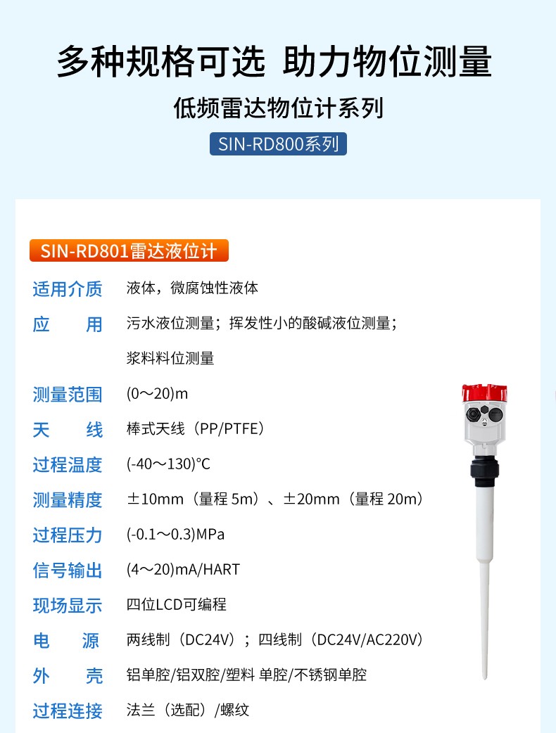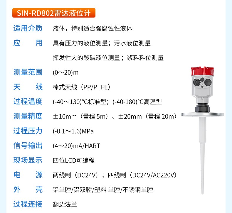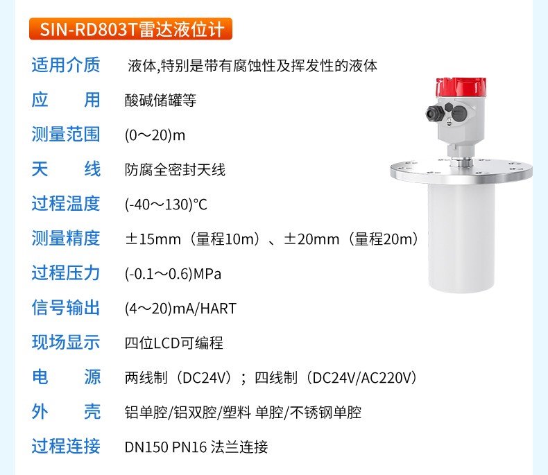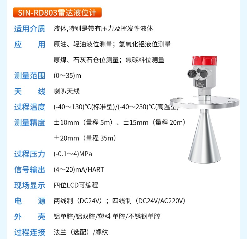 產(chǎn)品名稱:聯(lián)測_SIN-RD801雷達料位計_適用于液體,微腐蝕性液體