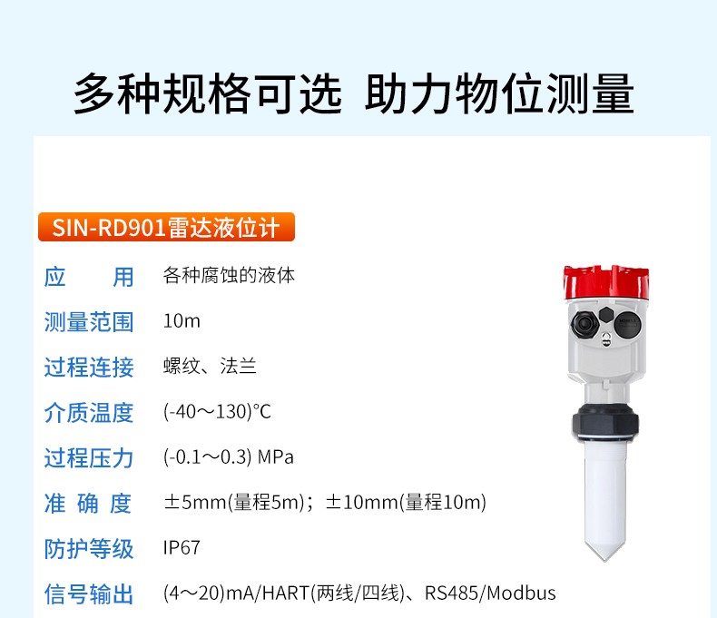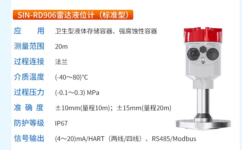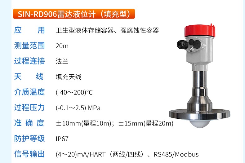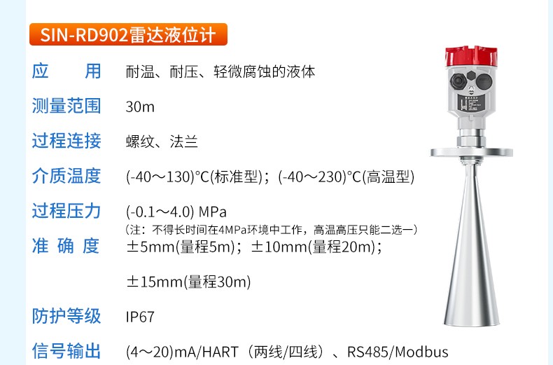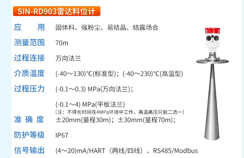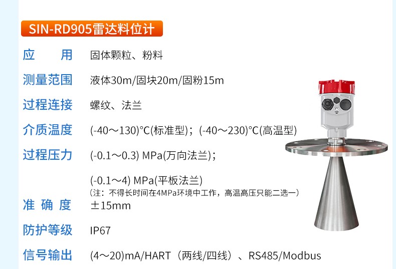 產品名稱:聯測_SIN-RD904雷達料位計_適用于強粉塵、易結晶 _