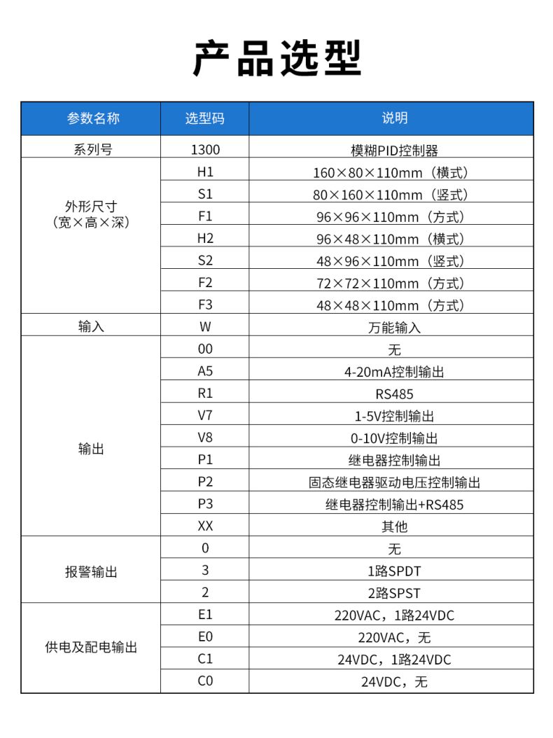 產(chǎn)品描述:SIN-1300模糊 PID 溫控器/調(diào)節(jié)儀采用模糊 PID 算式,無需人工整定參數(shù),控溫精度基本達±0.5℃,無超調(diào)、欠調(diào),性價比高。傻瓜式操作,7 款外型尺寸,支持 33 種信號輸入功能。