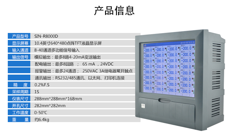 產品名稱:聯測_SIN-R8000D_1-40路可選_10.4英寸彩屏_記錄溫度/壓力/頻率/開關量等多種參數