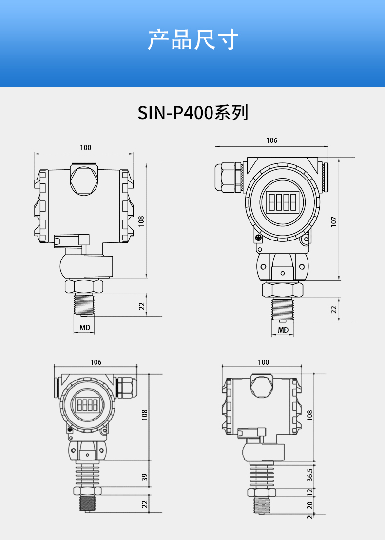 產品名稱:聯測_SIN-P400_2088型壓力變送器_榔頭型_可帶顯示