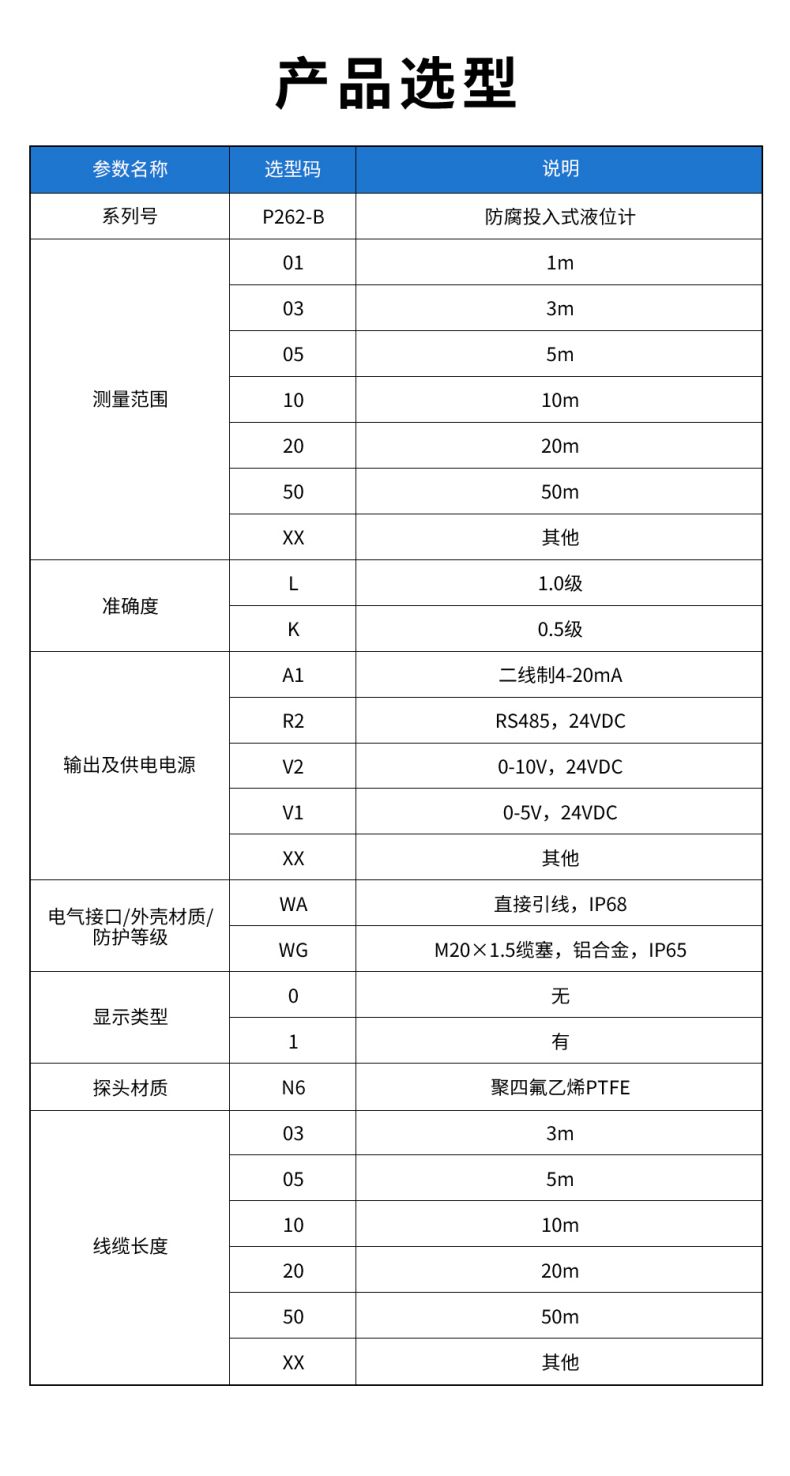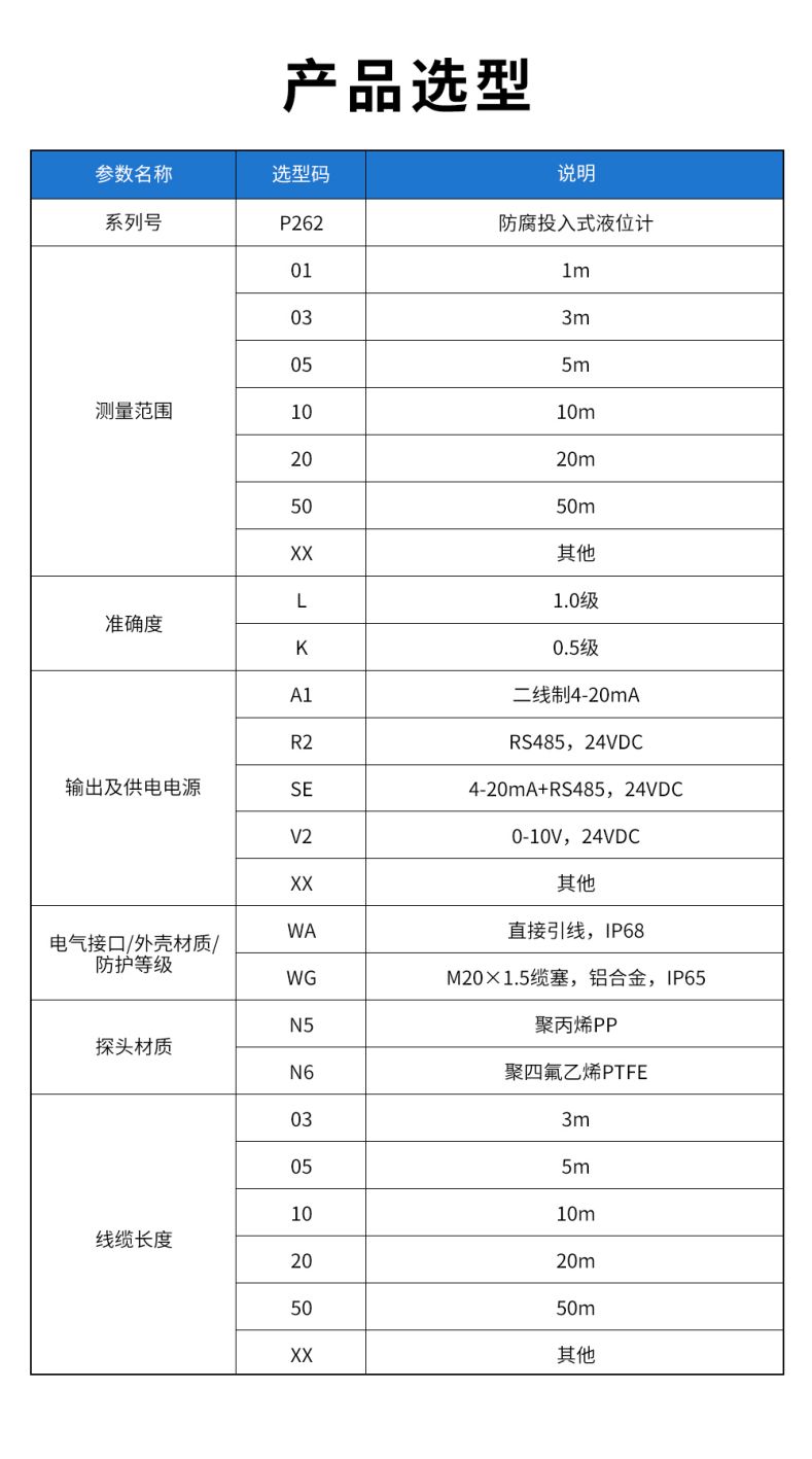 產(chǎn)品名稱:聯(lián)測_P262/P262-B防腐投入式液位計(jì)/水位計(jì)_陶瓷芯體_